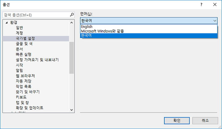 오류메세지를 영어로 검색하기 위해 비주얼 스튜디오를 영문으로 변경해서 빌드한 결과... 빌드가 됨-_-;